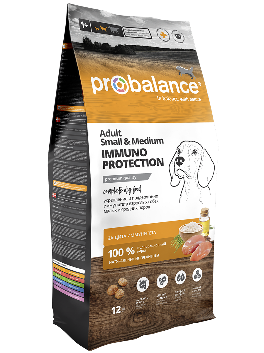 Probalance “Immuno Adult Small&Medium" - полностью натуральный корм для собак мелких и средних размеров. Рацион премиум-класса отличается сбалансированным составом (в основе – мясо). Укрепляет иммунитет. Подходит для ежедневного кормления.